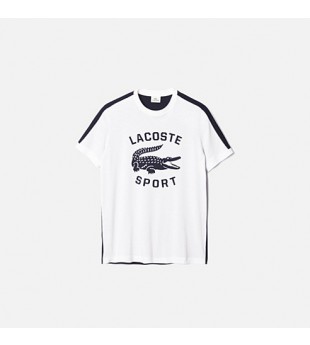 Zweifarbiges Sport T-Shirt aus Jersey 100% Baumwolle. Rückenpartie farblich abgesetzt. Einsätze an den Ärmeln und an der Seite. Lacoste-Aufdruck und kontrastfarbenes Krokodil auf der Brust.