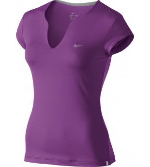 Das kurzärmelige Oberteil mit seiner femininen, schmeichelnden Passform sorgt mit schweissableitendem Stretchmaterial für trockenen Tragkomfort.