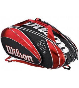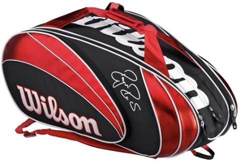 Die Wilson Federer 15er Tennistasche ist die Tasche von Roger Federer. Sie bietet genügend Platz für die ganze Ausrüstung. Bis zu 15 Rackets ohne Schutzhüllen finden in den 3 Fächern Platz. Ein Racketfach ist mit Thermoguard, das andere mit Moistureguard versehen. Diese Beläge schützen die Rackets bei extremer Hitze oder Feuchtigkeit. Ein grosses Seitenfach ist ideal für Schuhe oder Kleider. Mobiltelefon, Schlüssel, Saiten, Kleingeld etc. können in weiteren Zubehörtaschen gut organisiert aufbewahrt werden.